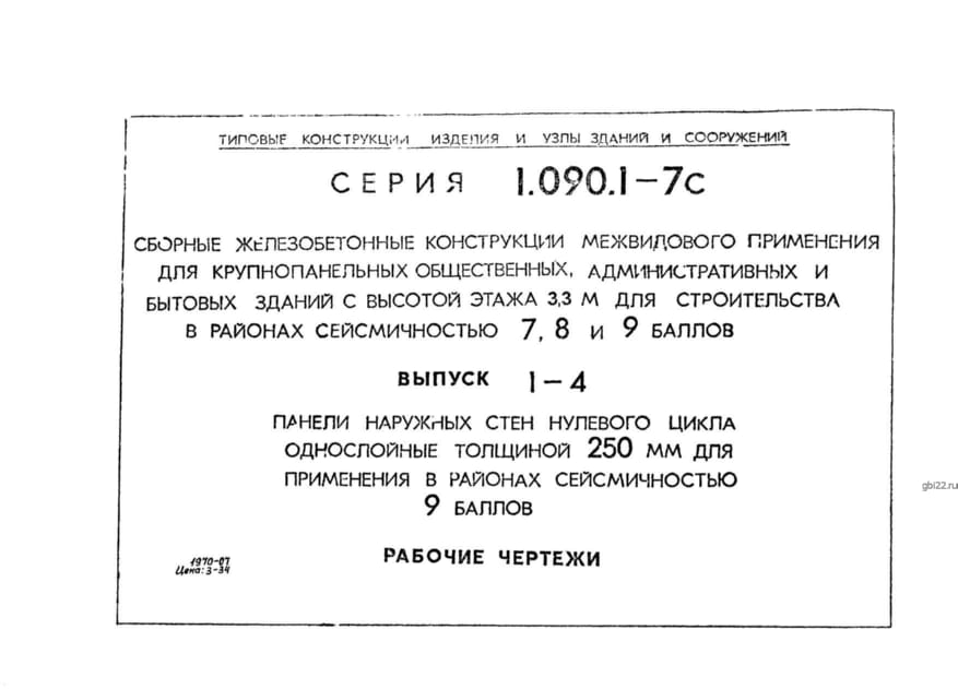 | Название стандарта | Сборные железобетонные конструкции межвидового применения для крупнопанельных общественных, административных и бытовых зданий с высотой этажа 3,3 м для строительства в районах сейсмичностью 7, 8, 9 баллов. |