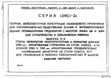 | Название стандарта | Сборные железобетонные конструкции межвидового применения для крупнопанельных общественных зданий и вспомогательных зданий промышленных предприятий с высотой этажа 3,0 и 3,3 м для строительства в сейсмических районах. |