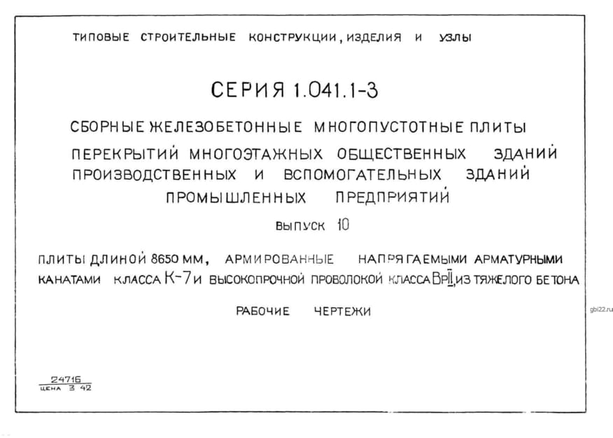 | Название стандарта | Сборные железобетонные многопустотные плиты перекрытий многоэтажных общественных зданий, производственных и вспомогательных зданий промышленных предприятий. |