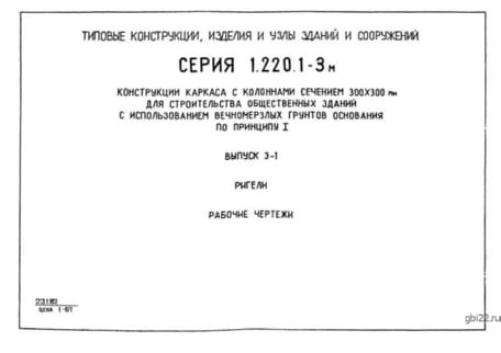 | Название стандарта | Конструкции каркаса с колоннами сечением 300х300 мм для строительства общественных зданий с использованием вечномерзлых грунтов основания по принципу 1. |