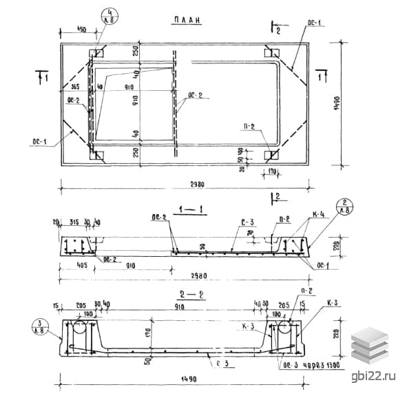 | Название стандарта | Предварительно напряженные ребристые железобетонные плиты длиной 628 и 598 см, армированные стержнями из стали класса А-IV. Метод натяжения - электротермический и механический. Плиты ребристые железобетонные длиной 298 см с объемным армированием. Рабочие |