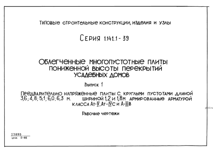 | Название стандарта | Облегченные многопустотные плиты пониженной высоты перекрытий усадебных домов. |