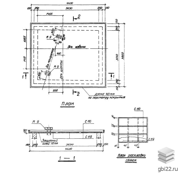 Плиты перекрытия шахт П 49 размеры: длина, мм.: 4430, ширина, мм.: 3850, высота, мм.: 130, вес, кг.: 4550, марка бетона: . Изделия относятся к категории Шахты лифтов железобетонные-Плиты перекрытия шахт и изготавливаются по технической документации согласно серия 1.489-1