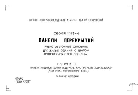 | Название стандарта | Панели перекрытий ячеистобетонные сплошные для жилых зданий с шагом поперечных стен 3,0 - 6,0 м. |