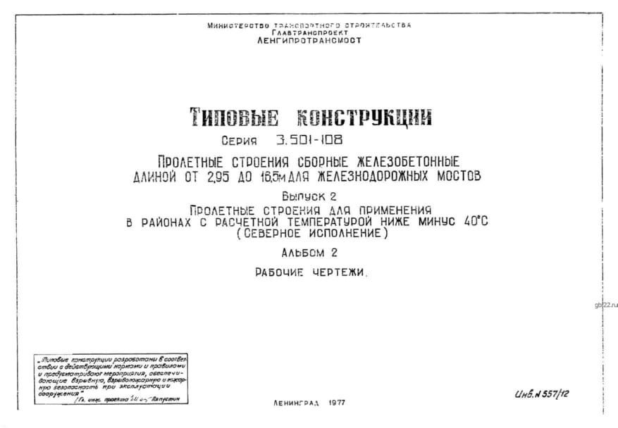 | Название стандарта | Пролетные строения сборные железобетонные длиной от 2,95 до 16,5 м для железнодорожных мостов. |