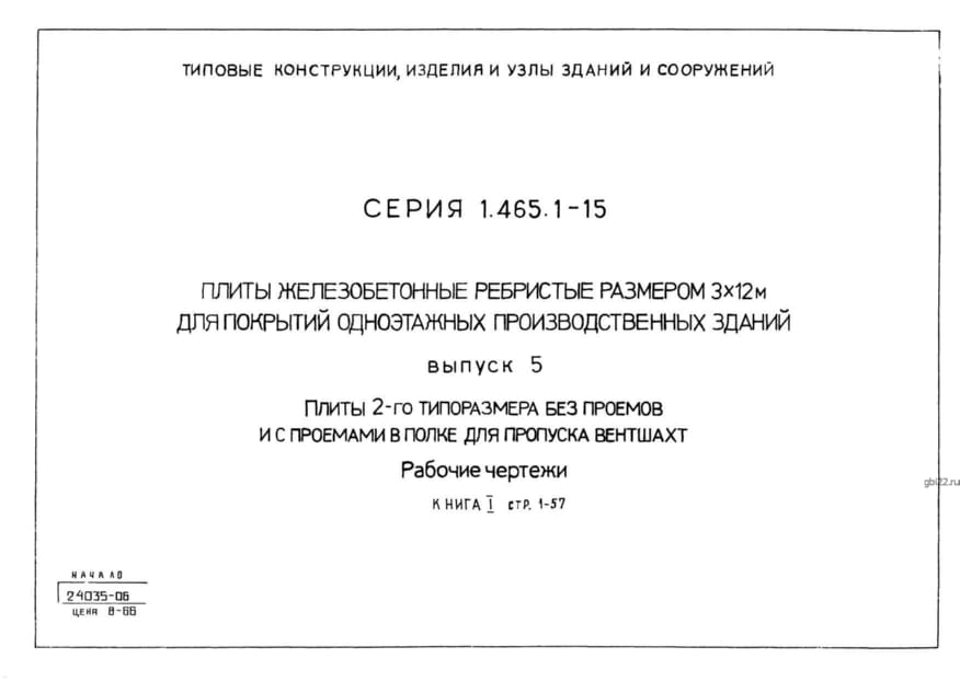 | Название стандарта | Плиты железобетонные ребристые размером 3х12 м для покрытий одноэтажных производственных зданий. |