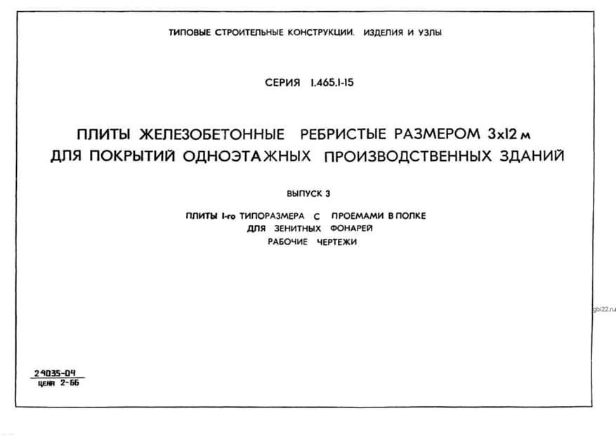 | Название стандарта | Плиты железобетонные ребристые размером 3х12 м для покрытий одноэтажных производственных зданий. |