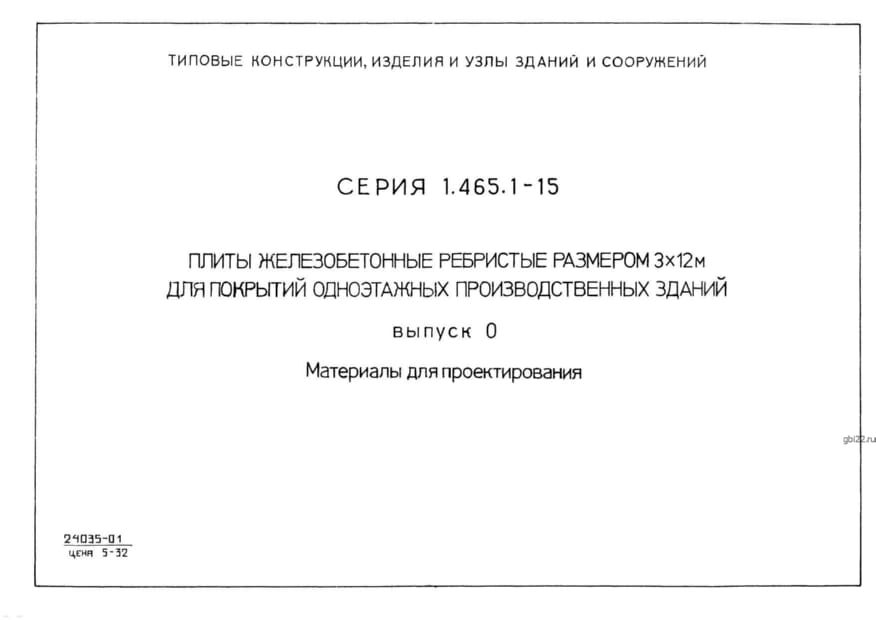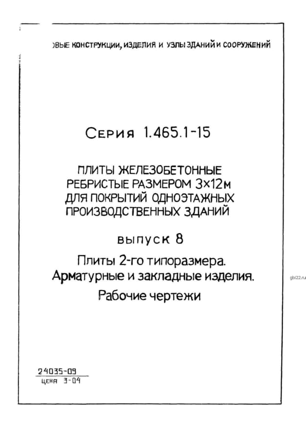 | Название стандарта | Плиты железобетонные ребристые размером 3х12 м для покрытий одноэтажных производственных зданий. |