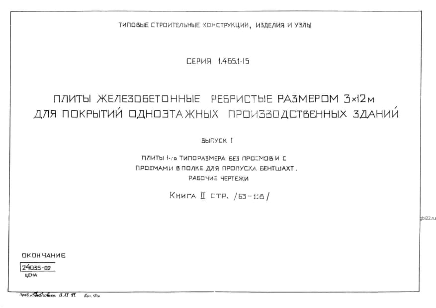 | Название стандарта | Плиты железобетонные ребристые размером 3х12 м для покрытий одноэтажных производственных зданий. |