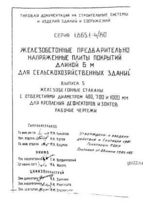 | Название стандарта | Железобетонные предварительно напряженные плиты покрытий длиной 6 м для сельскохозяйственных зданий. |