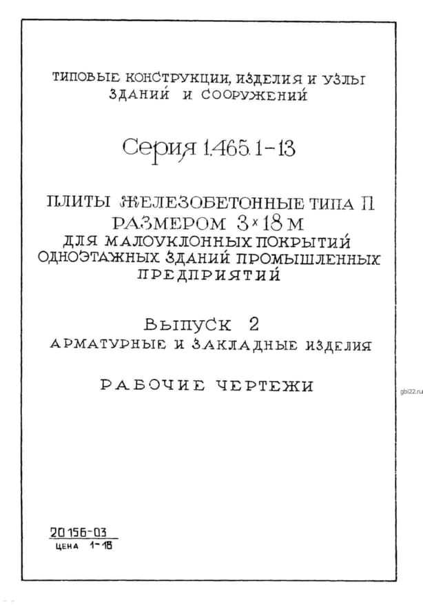 | Название стандарта | Плиты железобетонные типа П размером 3х18 м для малоуклонных покрытий одноэтажных зданий промышленных предприятий. |