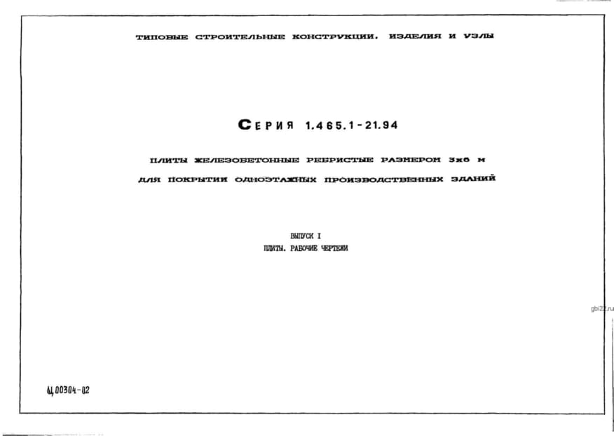 | Название стандарта | Плиты железобетонные ребристые размером 3х6 м для покрытий одноэтажных производственных зданий. |