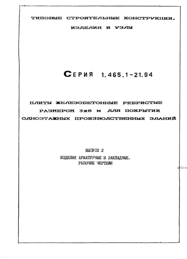 | Название стандарта | Плиты железобетонные ребристые размером 3х6 м для покрытий одноэтажных производственных зданий. |