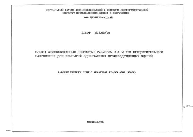 | Название стандарта | Плиты железобетонные ребристые размером 3х6 м без предварительного напряжения для покрытий одноэтажных производственных зданий. Рабочие чертежи плит с арматурой класса А500 (А500С). |