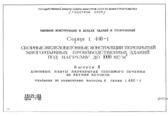 | Название стандарта | Сборные железобетонные конструкции перекрытий многоэтажных производственных зданий под нагрузку до 1000 кг/кв. м. |