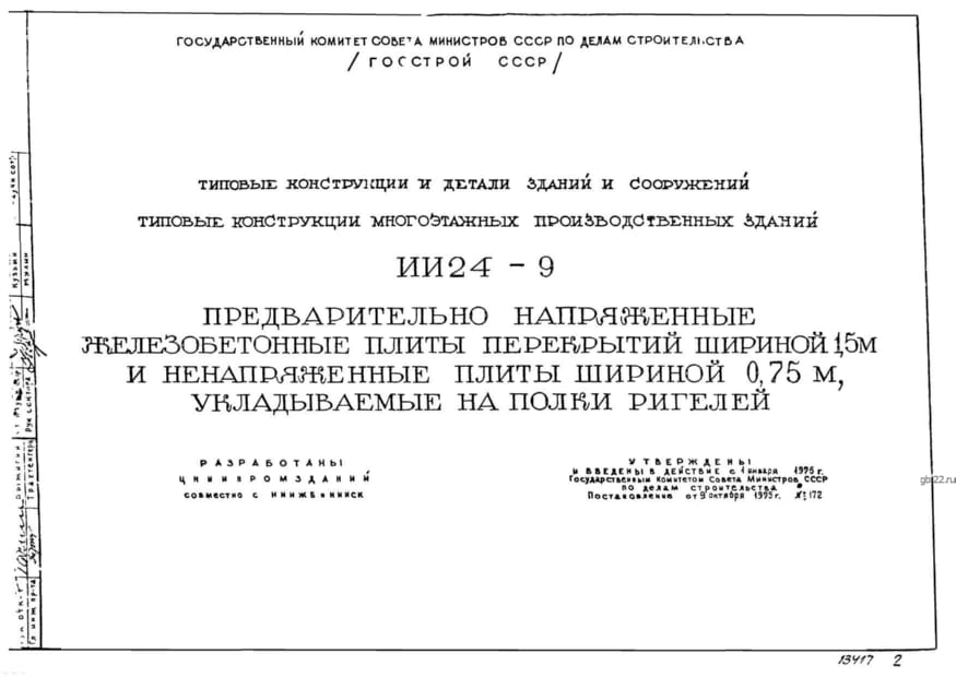 | Название стандарта | Предварительно напряженные железобетонные плиты перекрытий шириной 1,5 м и ненапряженные плиты шириной 0,75 м, укладываемые на полки ригелей. |
