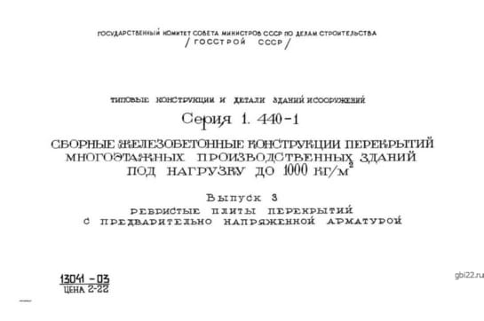 | Название стандарта | Сборные железобетонные конструкции перекрытий многоэтажных производственных зданий под нагрузку до 1000 кг/кв. м. |