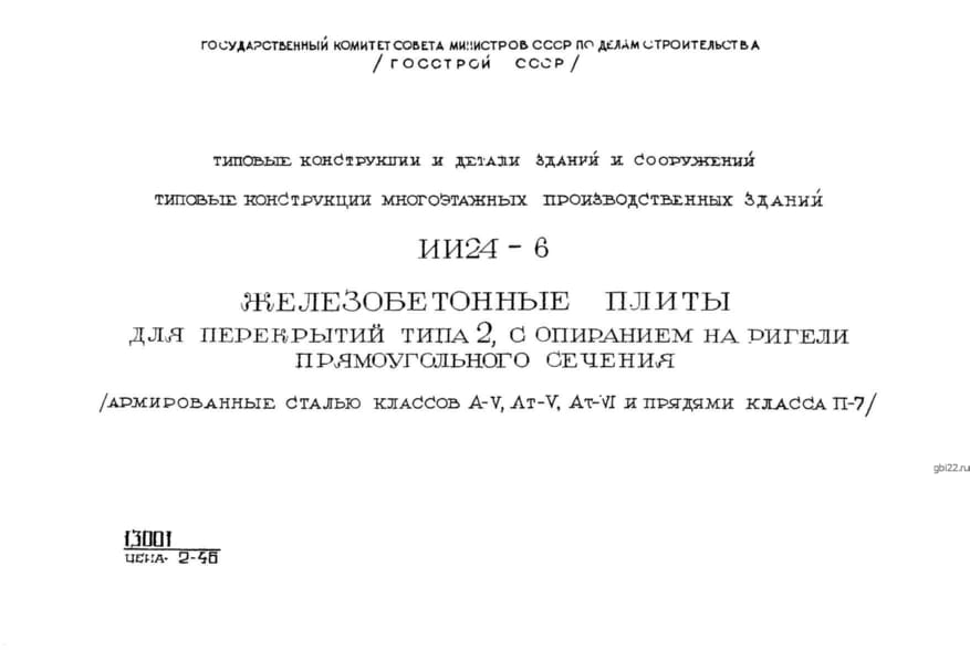 | Название стандарта | Железобетонные плиты для перекрытий типа 2, с опиранием на ригели прямоугольного сечения (армированные сталью классов А-V, Ат-V, Ат-VI и прядями класса П-7). |