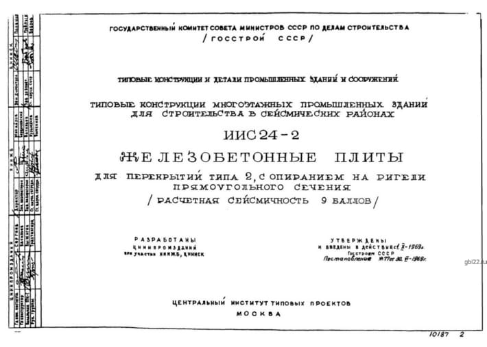 | Название стандарта | Железобетонные плиты для перекрытий типа 2, с опиранием на ригели прямоугольного сечения (расчетная сейсмичность 9 баллов). |