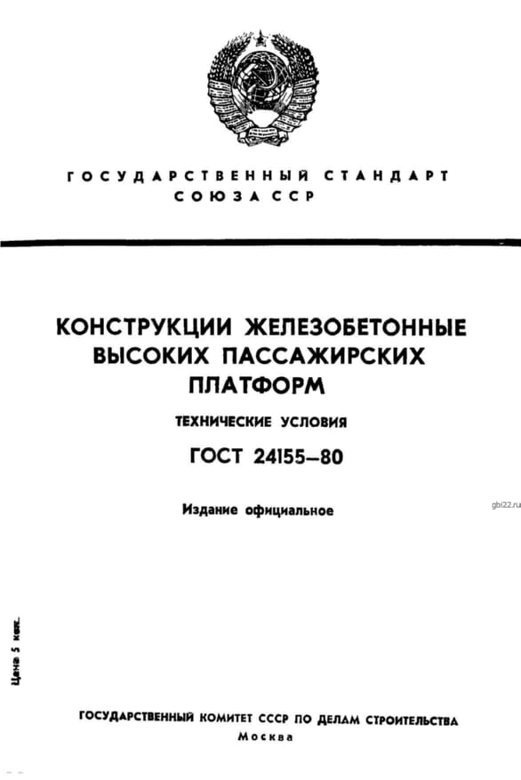 | Название стандарта | Конструкции железобетонные высоких пассажирских платформ. Технические условия. |