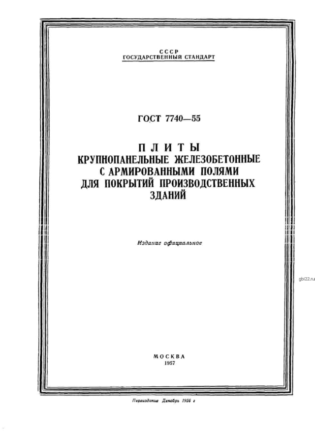 | Название стандарта | Плиты крупнопанельные железобетонные с армированными полями для покрытий производственных зданий. |