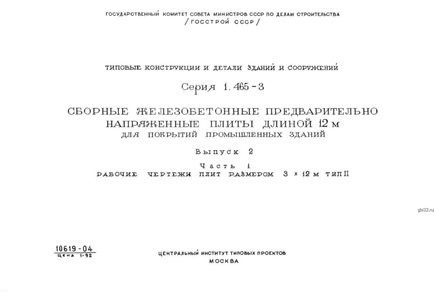 | Название стандарта | Сборные железобетонные предварительно напряженные плиты длиной 12 м для покрытий промышленных зданий. |