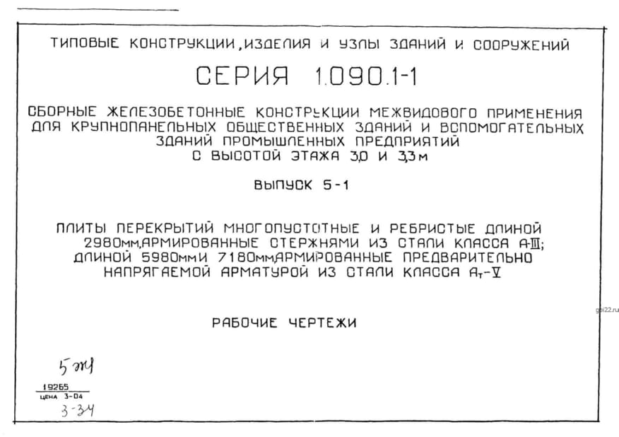 | Название стандарта | Сборные железобетонные конструкции межвидового применения для крупнопанельных общественных зданий и вспомогательных зданий промышленных предприятий с высотой этажей 3,0 и 3,3 м. |