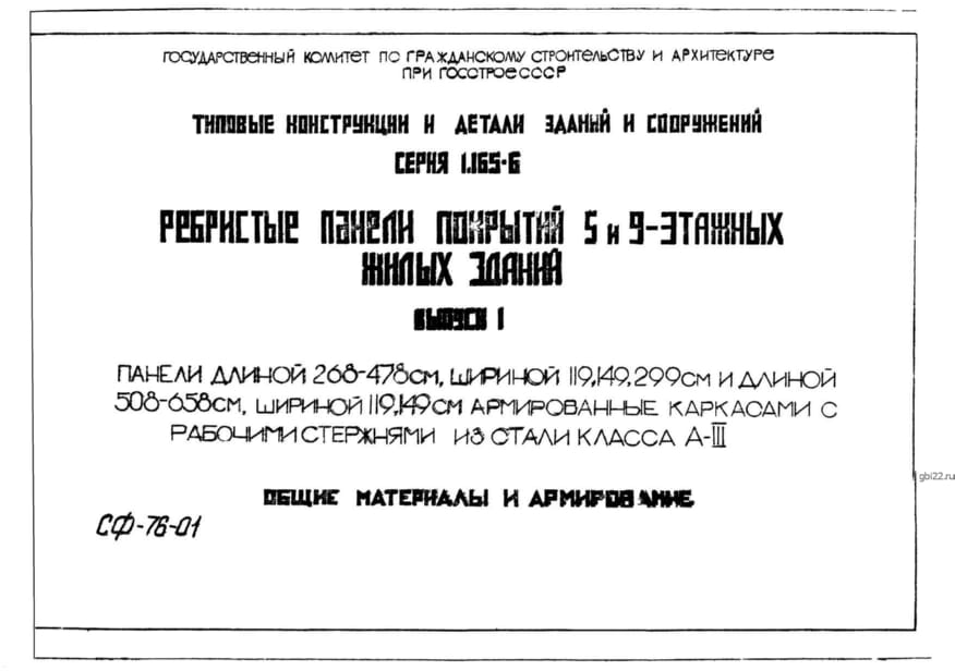 | Название стандарта | Ребристые панели покрытий 5 и 9-этажных жилых зданий. |