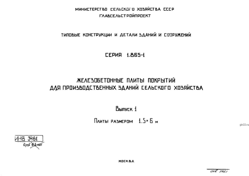 | Название стандарта | Железобетонные плиты покрытий для производственных зданий сельского хозяйства. |