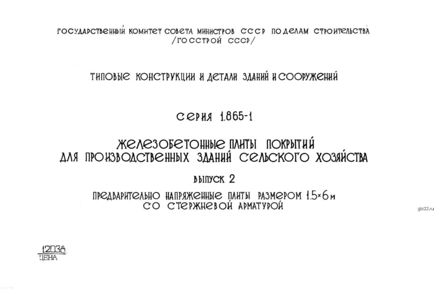 | Название стандарта | Железобетонные плиты покрытий для производственных зданий сельского хозяйства. |
