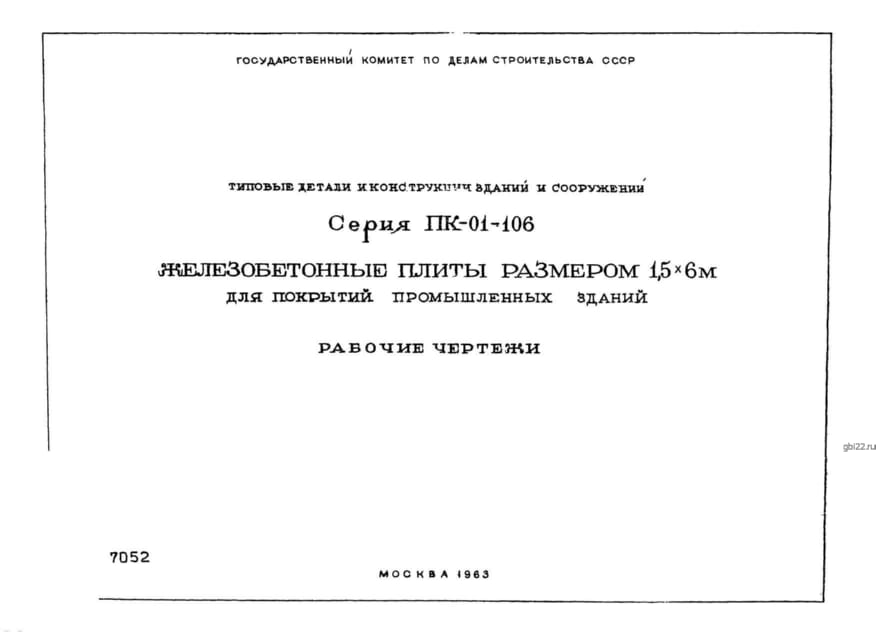 | Название стандарта | Железобетонные плиты размером 1,5х6 м для покрытий промышленных зданий. Рабочие чертежи. |
