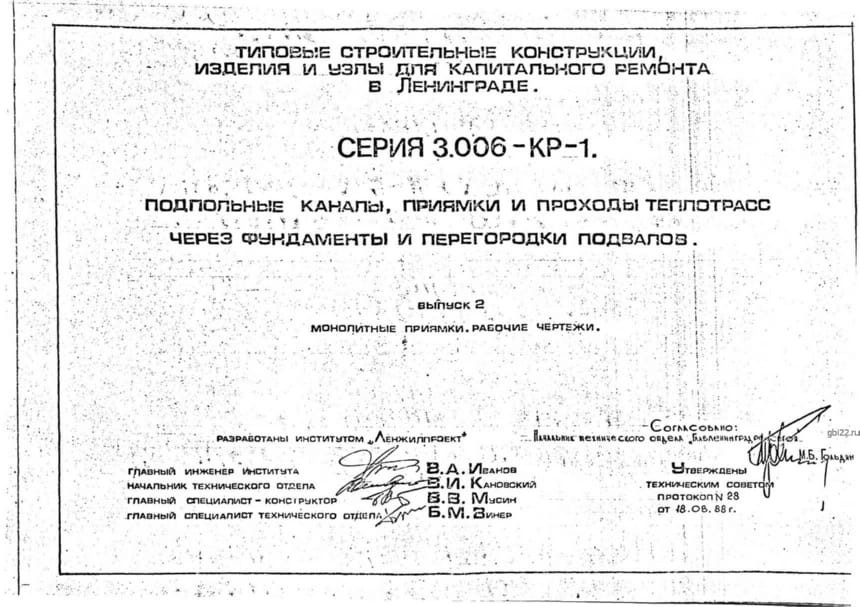 | Название стандарта | Подпольные каналы, приямки и проходы теплотрасс через фундаменты и перегородки подвалов. |