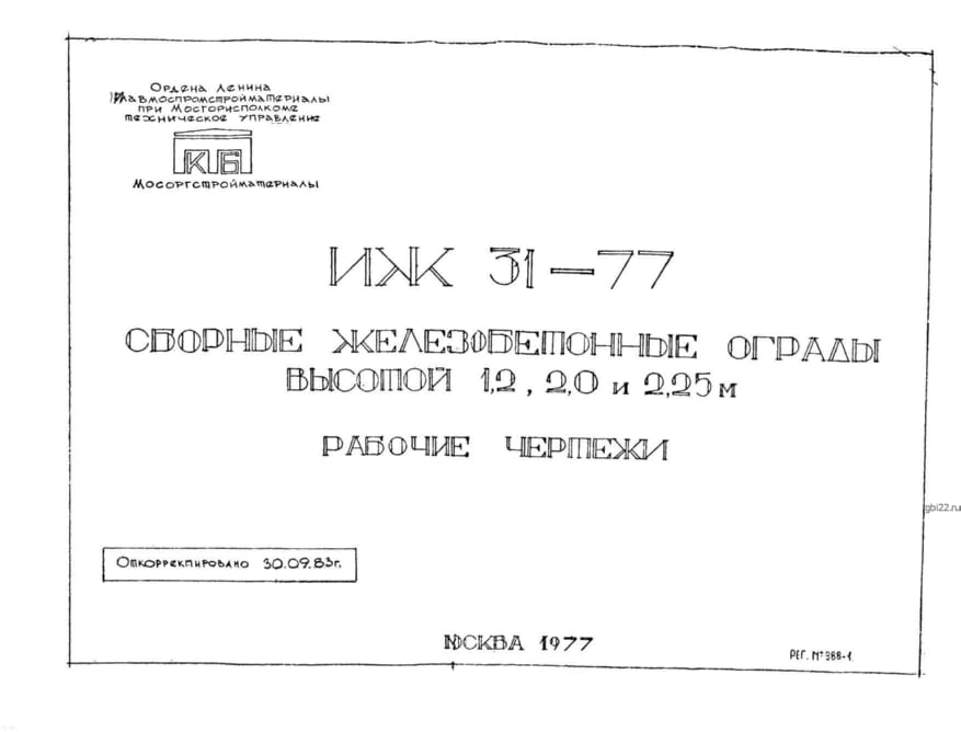 | Название стандарта | Сборные железобетонные ограды высотой 1,2, 2,0 и 2,25 м. Рабочие чертежи. |