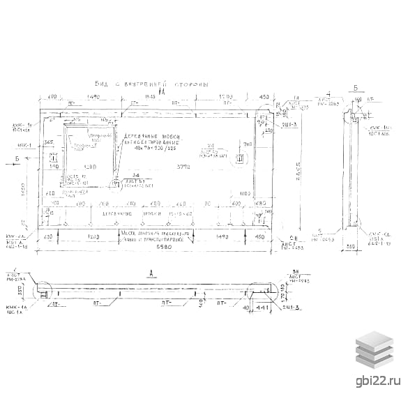 Прямоугольные железобетонные панели с технологическими отверстиями для оконных и дверных проемов. Оснащены монтажными выступами для соединения с каркасом здания.