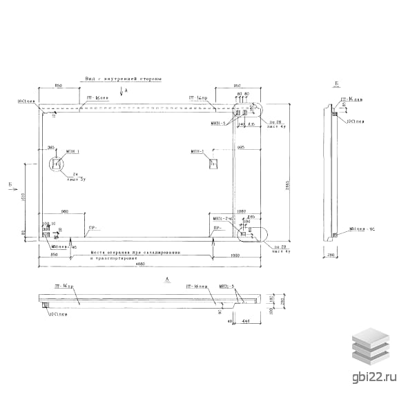 Перевозка осуществляется вертикально в защитных кассетах с деревянными прокладками. Для складирования предусмотрены инвентарные подкладки по схемам из Альбома РМ 2919-03.