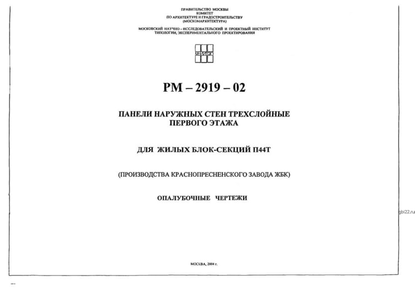 | Название стандарта | Панели наружных стен трехслойные первого этажа. Для жилых блок-секций П44Т (производства Краснопресненского завода ЖБК). |