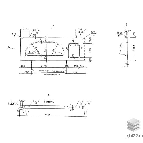 Перевозка — на специализированном транспорте с фиксацией. Складирование — вертикально на подкладки в указанных местах. Погрузка — за монтажные петли с балансирующими траверсами.