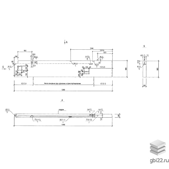 Перевозка — на панелевозах с фиксацией. Складирование — вертикально на подкладки в указанных местах. Погрузка — за монтажные петли с балансирующими траверсами. Требуется защита от механических повреждений.