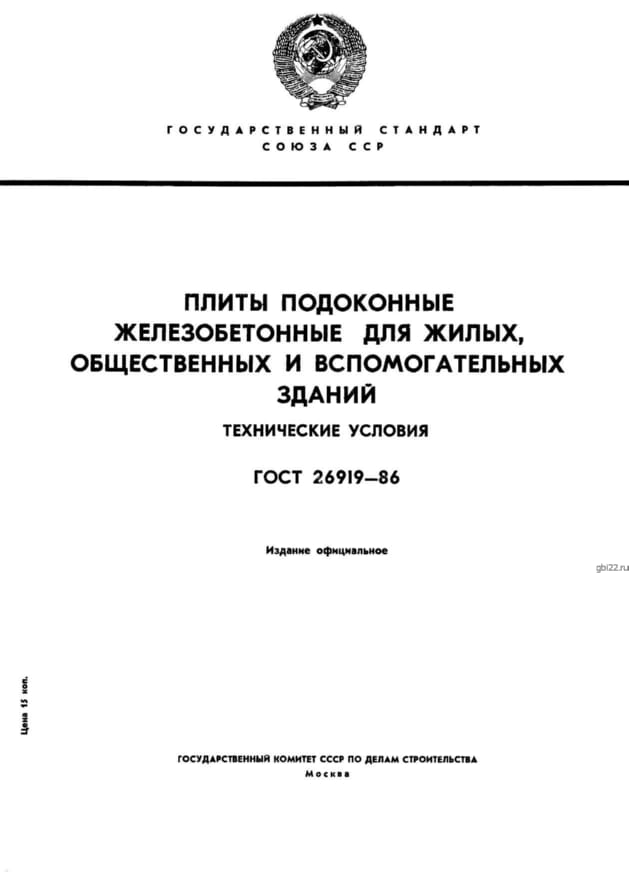 | Название стандарта | Плиты подоконные железобетонные для жилых, общественных и вспомогательных зданий. Технические условия. |