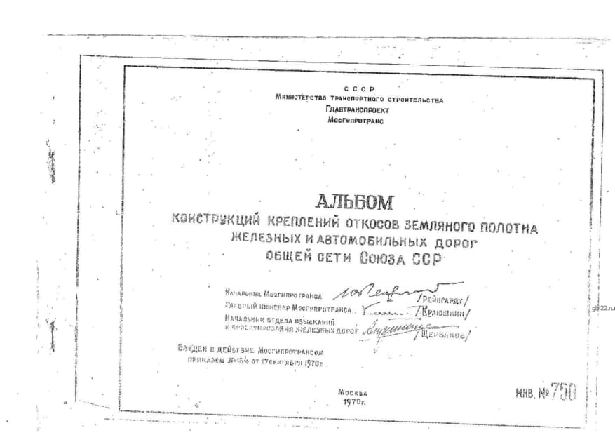 | Название стандарта | Конструкция креплений откосов земляного полотна железных и автомобильных дорог общей сети Союза ССР. |