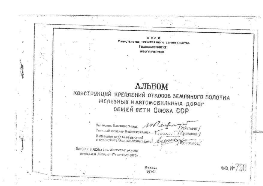 | Название стандарта | Конструкция креплений откосов земляного полотна железных и автомобильных дорог общей сети Союза ССР. |