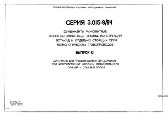 | Название стандарта | Фундаменты монолитные железобетонные под типовые конструкции эстакад и отдельно стоящих опор технологических трубопроводов. |