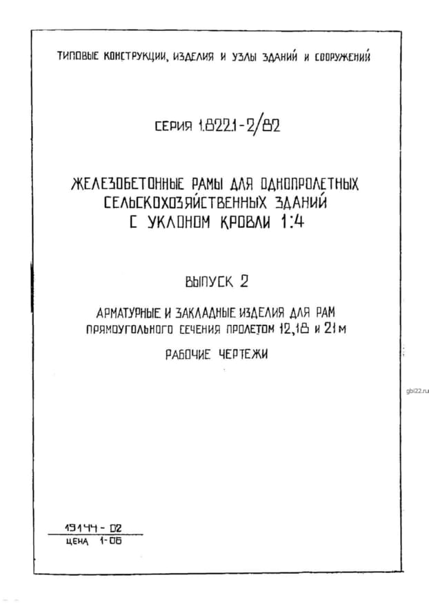 | Название стандарта | Железобетонные рамы для однопролетных сельскохозяйственных зданий с уклоном кровли 1:4. |