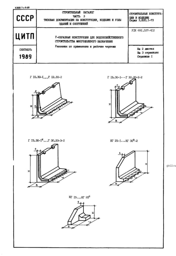 Г-образные конструкции для водохозяйственного строительства многоцелевого назначения. Указания по применению и рабочие чертежи.