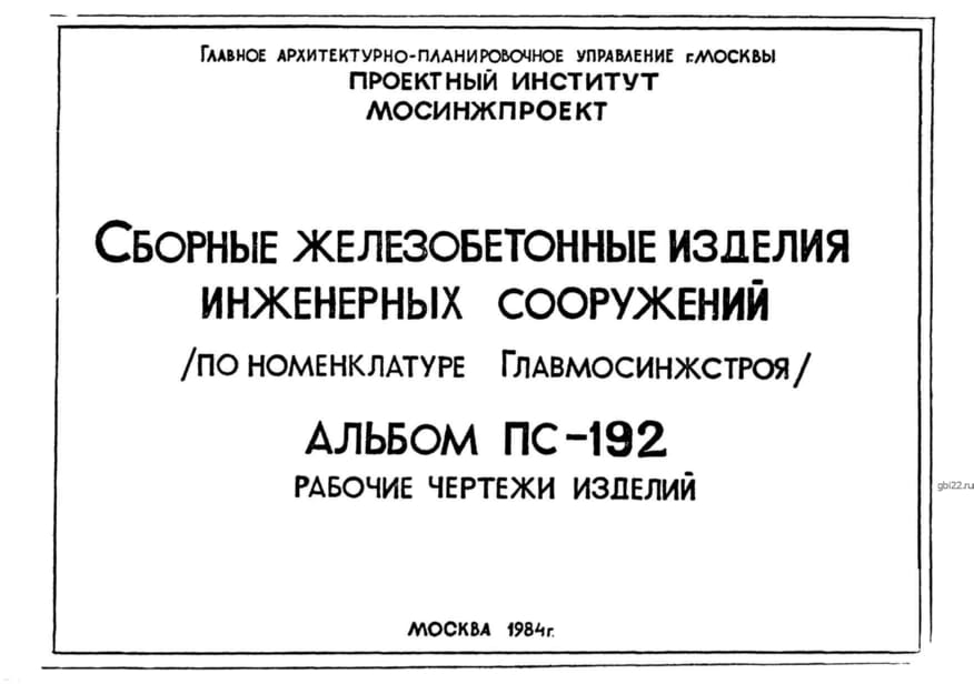 | Название стандарта | Сборные железобетонные изделия инженерных сооружений (по номенклатуре Главмосинжстроя). Рабочие чертежи изделий. |