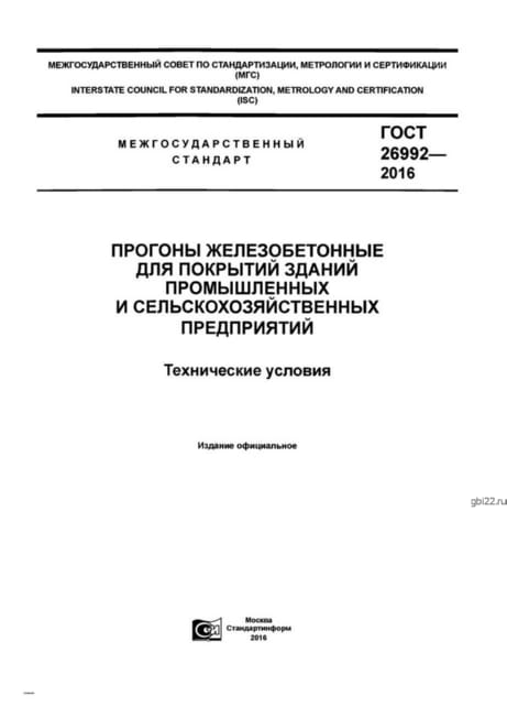 ГОСТ 26992-2016 – государственный стандарт, регламентирующий производство железобетонных прогонов.