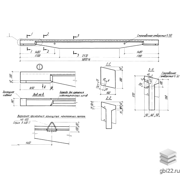 Железобетонные прогоны 5ПР 2 АIV п (ГОСТ 26992-86)