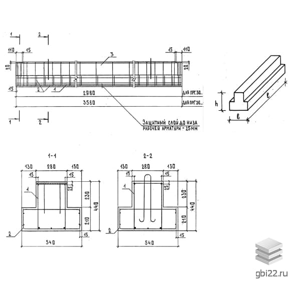 Прогоны ПРГ 30-4-4 АIII размеры: длина, мм.: 2980, ширина, мм.: 540, высота, мм.: 440, вес, кг.: 1350, марка бетона: М250. Изделия относятся к категории Прогоны железобетонные-Прогоны и изготавливаются по технической документации согласно серия 1.225-2
