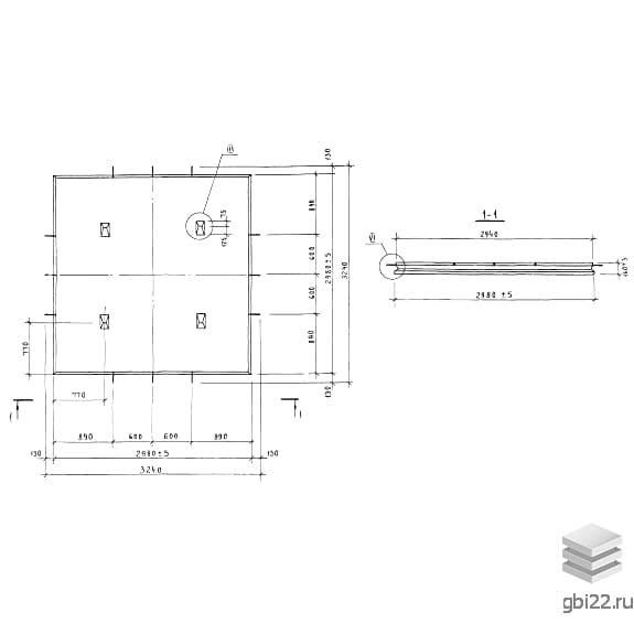 Железобетонная плита ПП 1-5 — плоский прямоугольный элемент с арматурными выпусками для соединения с другими частями здания. Конструкция может включать технологические вырезы для коммуникаций.