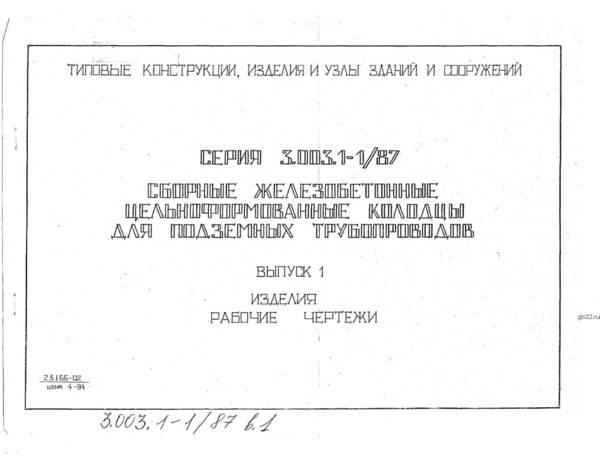 | Название стандарта | Сборные железобетонные цельноформованные колодцы для подземных трубопроводов. |